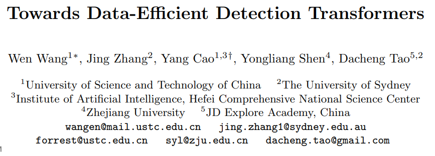 大家好!本文介绍一下我们中稿今年ECCV的一项工作:Towards Data-Efficient Detection Transformers。