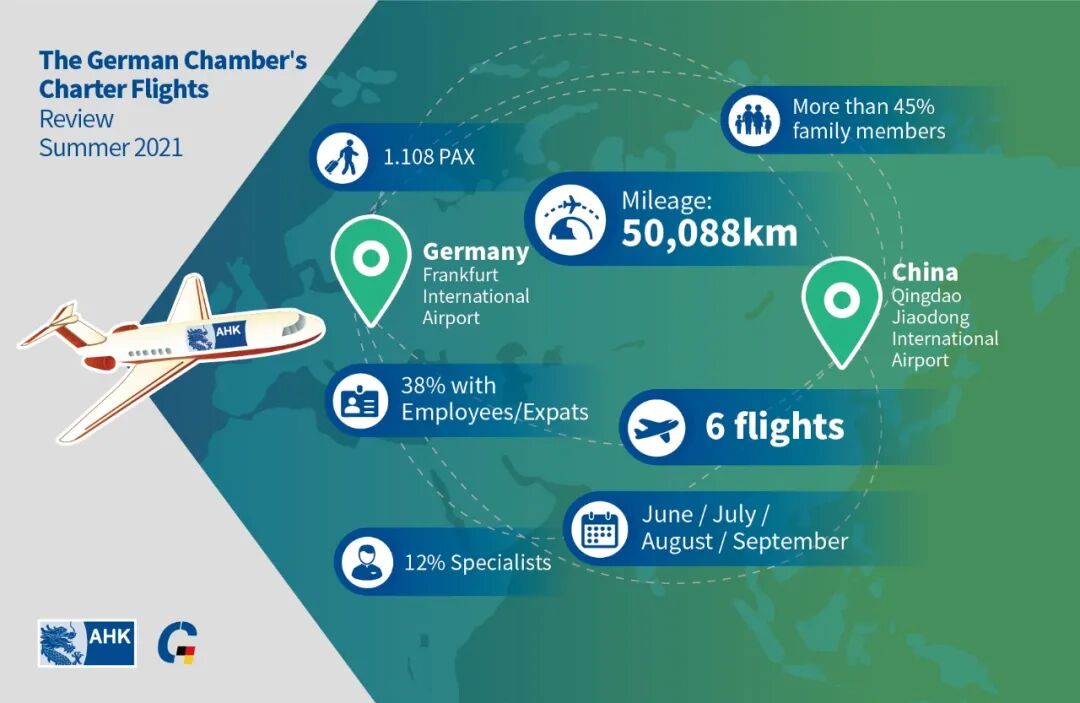 The German Chamber, together with German Diplomatic Missions in China and Lufthansa Group, organized 6 charter flights to China in 2021, bringing back over 1,100 employees of German companies to China as well as their families and urgently-needed personnel.