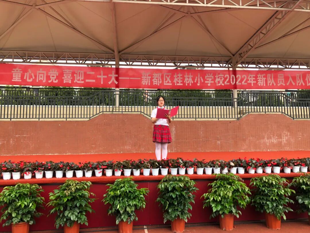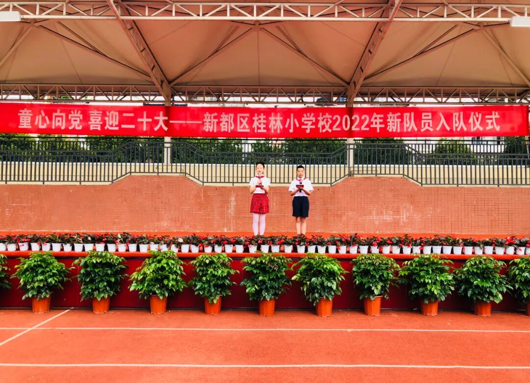 星星火炬指引着我们前行,飘扬的红领巾陪伴我们逐梦。成为一名光荣的少先队员,是每一名小学生最期盼的事情。2022年5月26日,新都区桂林小学校举行了“童心向党,喜迎二十大”2021级第一批少先队员入队仪式。