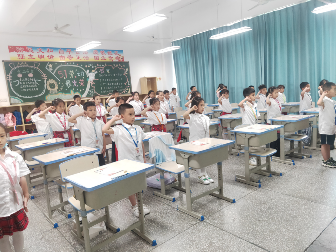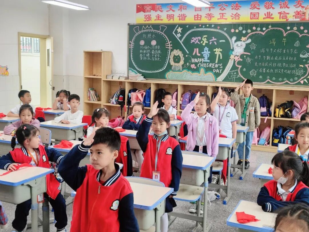 队前教育课程结束后,一年级小朋友积极参与课后实践。