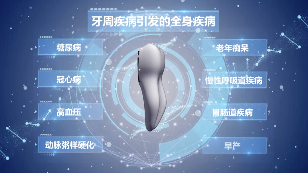 牙周疾病连心、连脑、连肺、连胃,甚至还连着下一代。糖尿病、冠心病、高血压、早产等,都可能由牙周疾病引起。