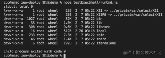 下来看一个 demo,新建一个 testExecShell 测试目录,测试效果
