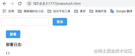 node server/indexAuth.js,打开 127.0.0.1:7777/indexAuth.html,登录成功之后才能部署