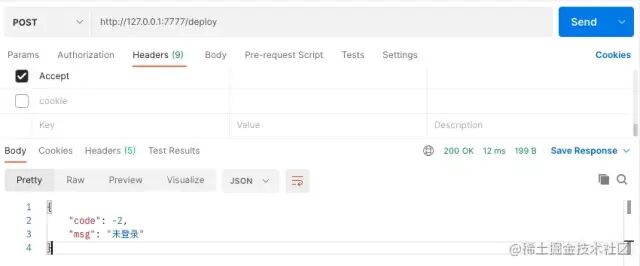npm init 初始化 package.jsonnpm install koa koa-router koa-static --save 安装依赖包node server/index.js 运行项目,注意如果 7777 端口被占用,需要换一个端口访问 http:// 127.0.0.1:7777 就可以访问页面,点击部署就可以请求成功了