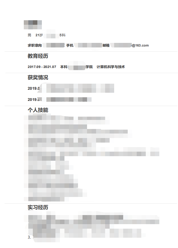 在某某人的催促下,我制作了我的第一份简历,没有照搬任何模板,没有花里胡哨,简单明了。