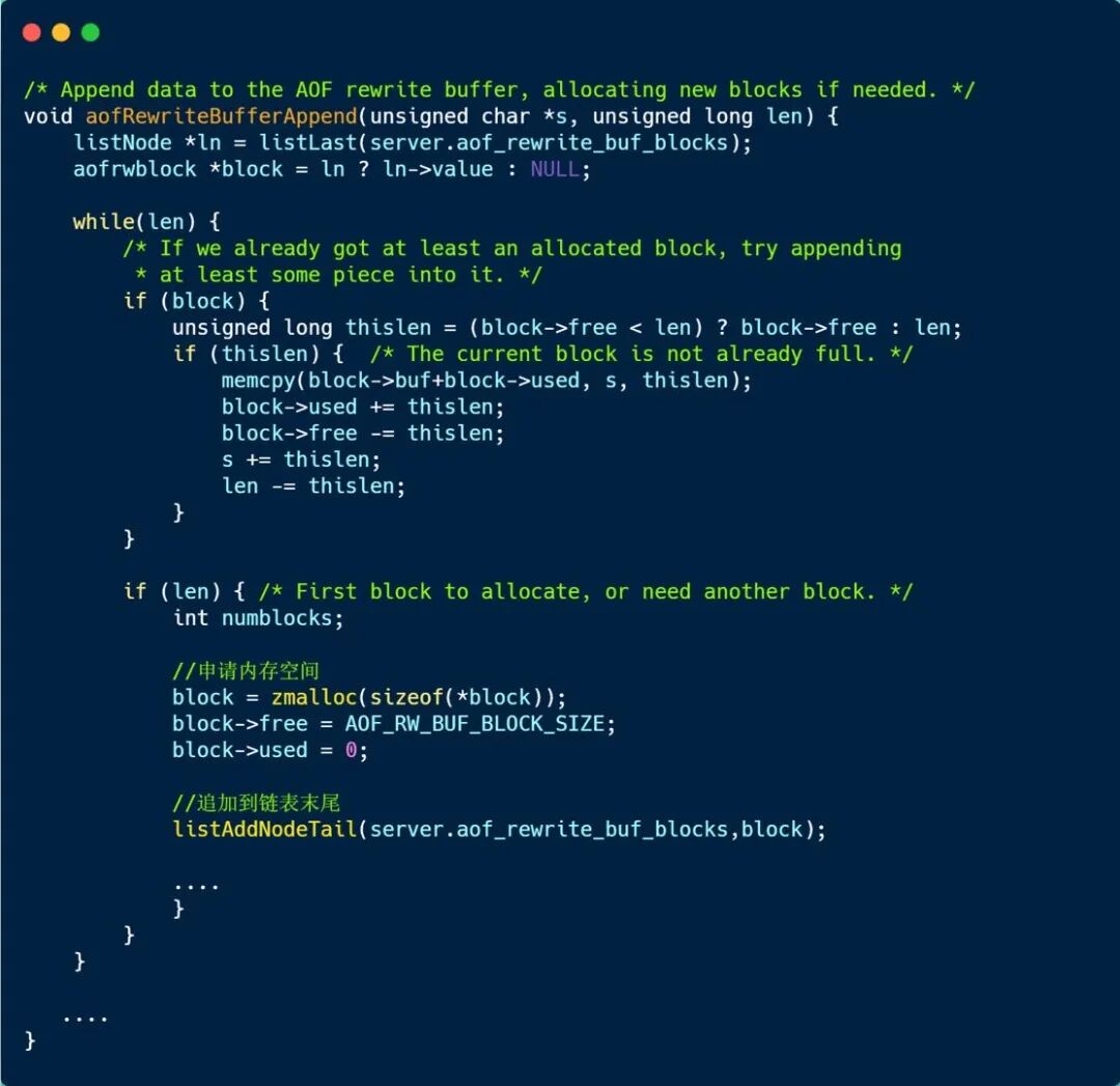 接下来,我们看看 Redis 是如何使用申请和使用 aofrwblock 结构的。