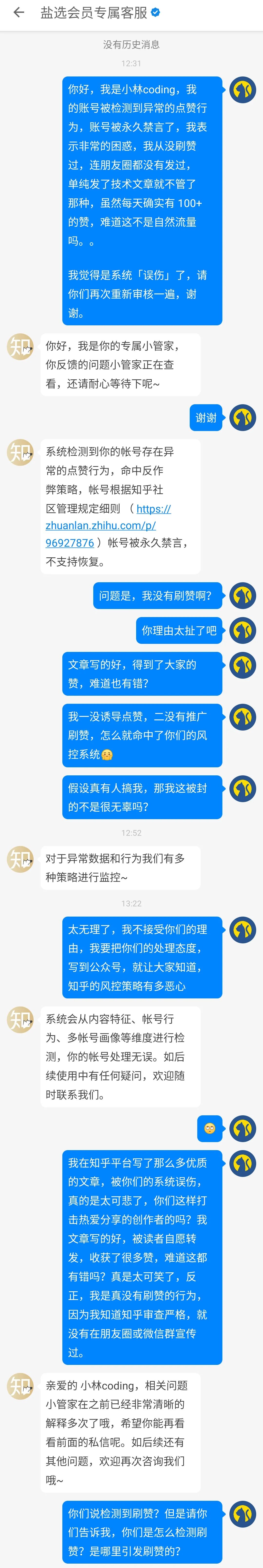就这样一个遵循知乎社区规则,又非常佛系的创作者,被知乎冠以刷赞的罪名,而永久禁言,你说气不气人?