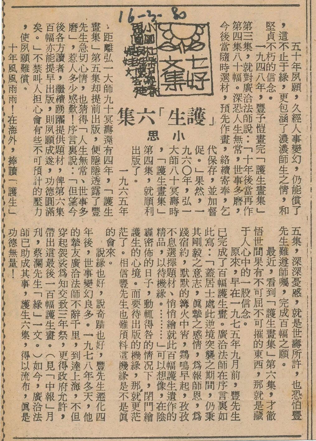 这是香港《星岛日报》上的一个合写专栏,由七个小姐姐轮流撰写,于是被称为“七好”,专栏里有柴娃娃的醒,杜良媞的实,圆圆的辣,小思的淡,陆离的秀,尹怀文的醇,亦舒的直。