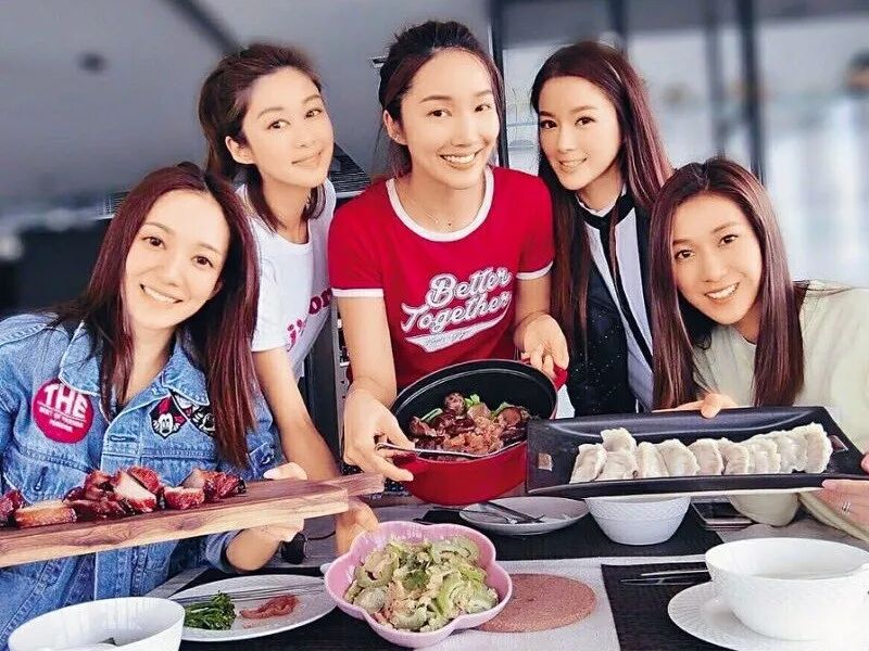 虽然title是港媒给的,但因为共同信仰和属性,五人确实是圈中好姐妹,常常会结伴买菜做饭聚会。