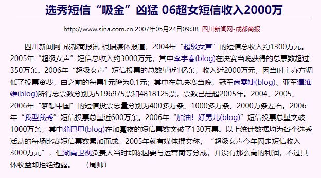 那时有一些专栏作者也撰文称这种短信投票有欺诈嫌疑