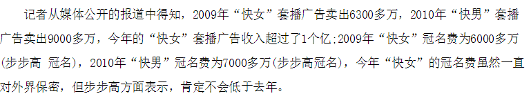 如果粗略地把票数等同一票1元的费用,全国赛1500万票,预赛1000万票来算,那总毛利润可以到2500万。而这笔钱,大部分是电视台和通讯商的盈利。