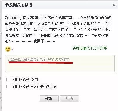 当时包贝尔在微博上开玩笑,让郑爽开微博,张翰就回复了:“请问是在搭讪吗?这位朋友。”