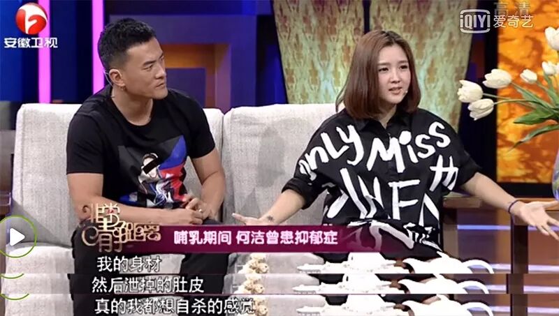 很多明星也自曝怀孕和生完后有过抑郁情绪,何洁在节目中说,生下七宝之后觉得自己特别没用,除了喂奶之外一无是处,再看看走形的身材,松掉的肚皮,只想自杀。