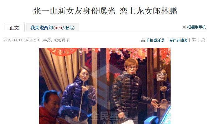 2015年时,张一山还被拍到和龙女郎林鹏一同吃饭的照片。