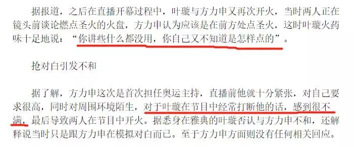 方力申是退役游泳运动员,参加过悉尼奥运,专业度较高,所以叶璇的抢白引起观众不满。不少网友在无线官网骂她“争话讲”“没有见识”。