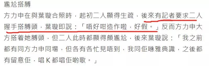 嘴上说没有不和,但两人出席慰劳宴,有记者让他们搭肩合照,叶璇还是不配合,直接说“好造作,好假”。