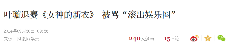 比如参加《女神的新衣》却中途宣布退赛,然后大爆造假内幕,结果被反曝“嚣张无礼貌”,微博上还引爆了“叶璇退出娱乐圈”的话题。