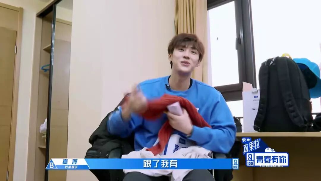 而嘉羿选手随身携带的必需品就比较暖心啦,是一件跟了他20年的毛衣~