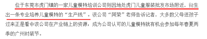 在很多服装批发市场附近,都会衍生出童模“生产线”,大批家长会看中相关资源把孩子送进童模圈培养。