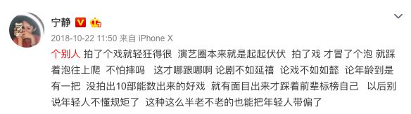 期间,宁静发了一条不点名的diss微博,并冲上热搜。