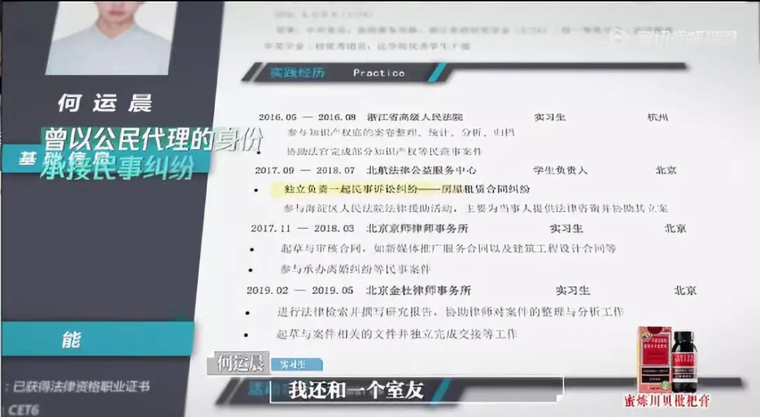 光看履历并不突出的何运晨,却成了第一个案例中表现最优秀的两位实习生之一,带教律师直接表达喜爱之情:运晨是我最喜欢的一个。