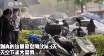台北下着大雨,小S戴着口罩和墨镜,全程不发一言。