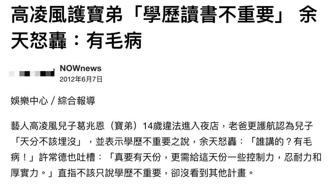 护子心切的高凌风发声说“学历不重要”,孩子的“演艺天分”不该被埋没,听得老艺人余天怒轰:“有毛病!念书很重要!”