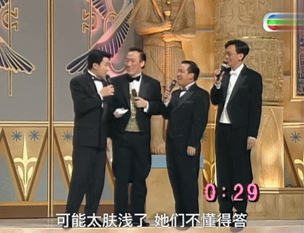 1992年,则集齐了郭富城、张学友、黎明、刘德华四大天王,上一届的港姐冠军郭蔼明则轮翻和四大天王共舞,从一个天王的怀里旋转跳跃到另一个天王的怀里……