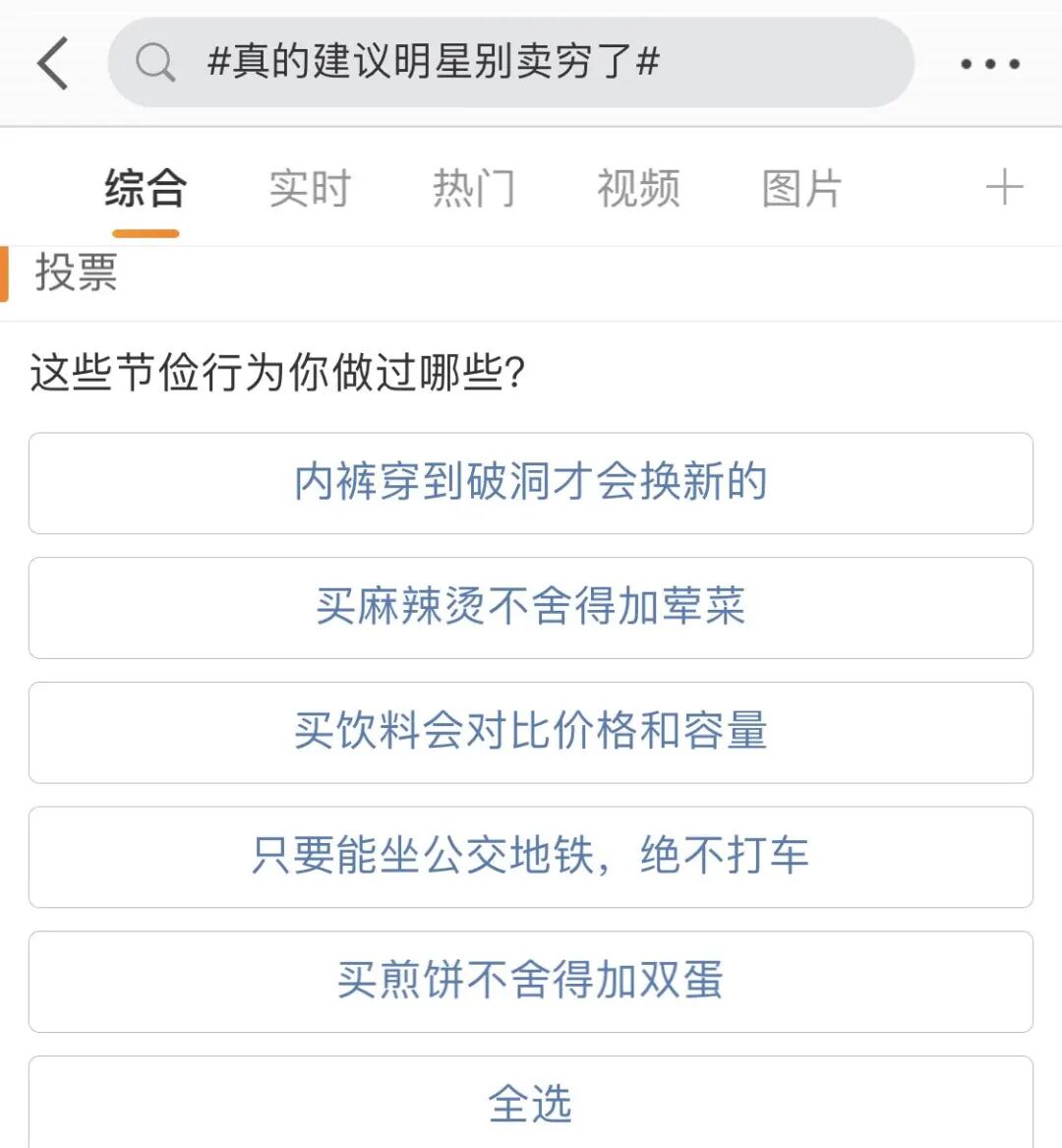 昨天,#真的建议明星别卖穷了#一直挂在热搜上,评论区全成了996社畜的吐槽阵地,还出现了这种抠组既视感的投票↓