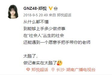 GNZ48的郑悦,则到湖南的地方卫视做记者,也算是个不错的出路。