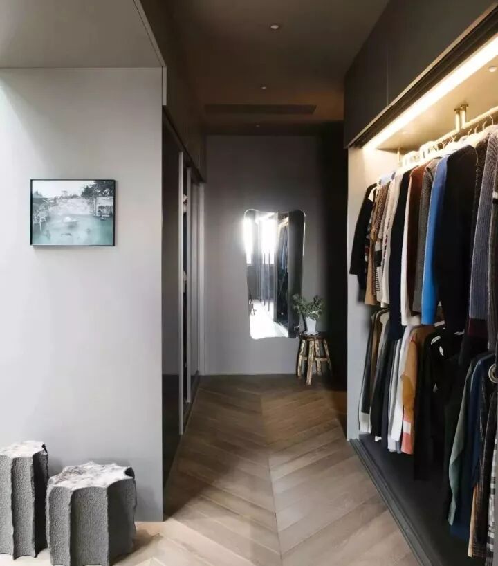 整个房间的色调和灰色的墙面相得益彰,风格十分统一。