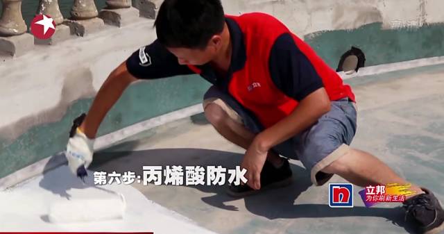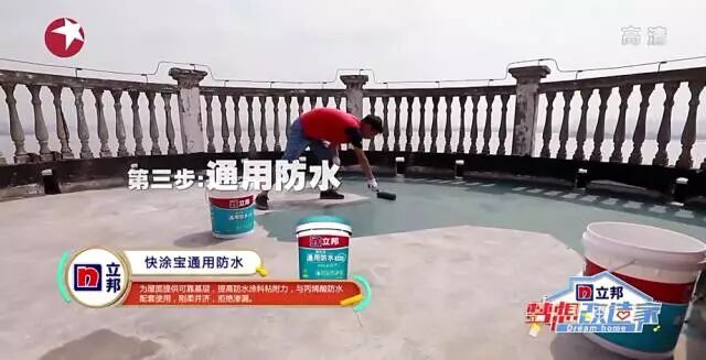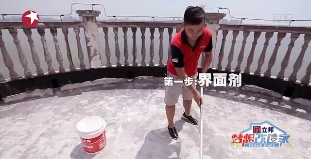 这七步完成了,还要再刷一层易涂防水漆,一个弹性防水漆。专业名词不用明白,你知道目前为止天台的防水层已经处理了整!整!九!层!就够了……