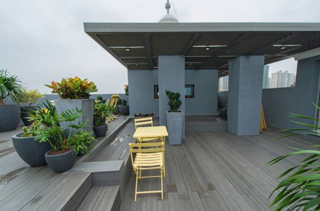 天台的防水只是完成了第一步。真正的设计是把天台整体进行了升级,成了整栋楼的人玩耍和休息的空间。