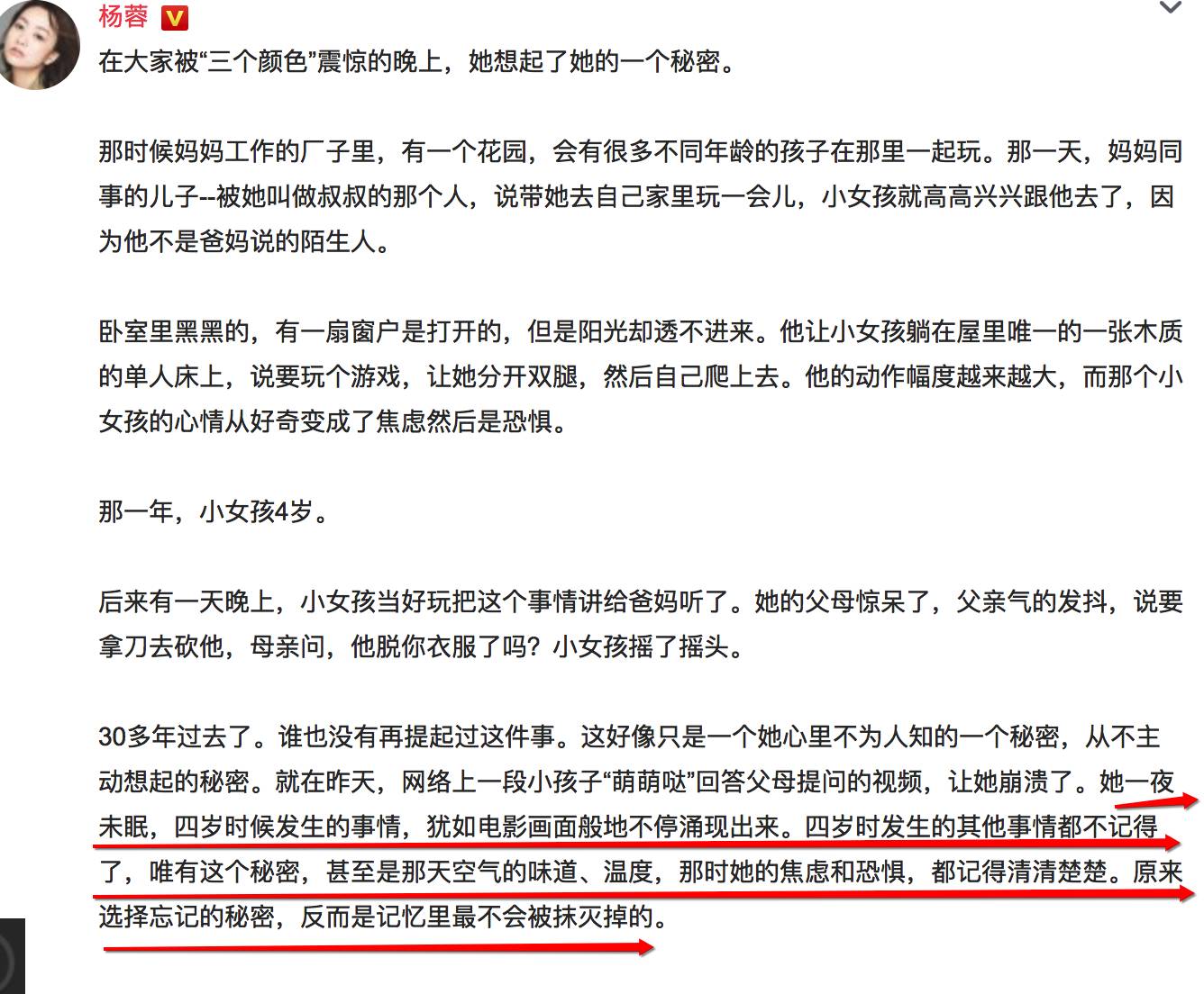 “我可以假装这世界没有人以强奸小女孩为乐……我已经忘记八月十一日是什么日子,但是那日起床就开始癫痫、流眼泪,我不是生来癫痫的。可以忘记创伤,但创伤不会忘了我。”