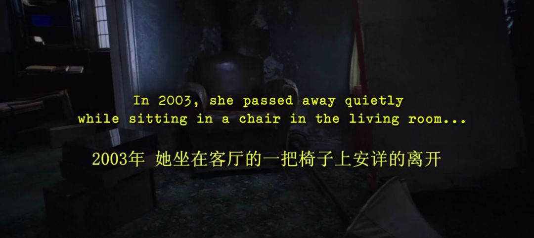 当珍妮“被附身”时,会发出年迈男人的沙哑声音,说“在我死之前,我失明了,然后内出血,接着在睡梦中我死在这间房子一楼客厅角落的沙发上”。