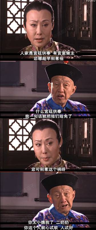 嬉笑之间,二奶奶和常公公的关系早从“利益共同体”发展成了“朋友”。这其间的分寸拿捏,简直可以出一本《二奶奶的说话之道》。
