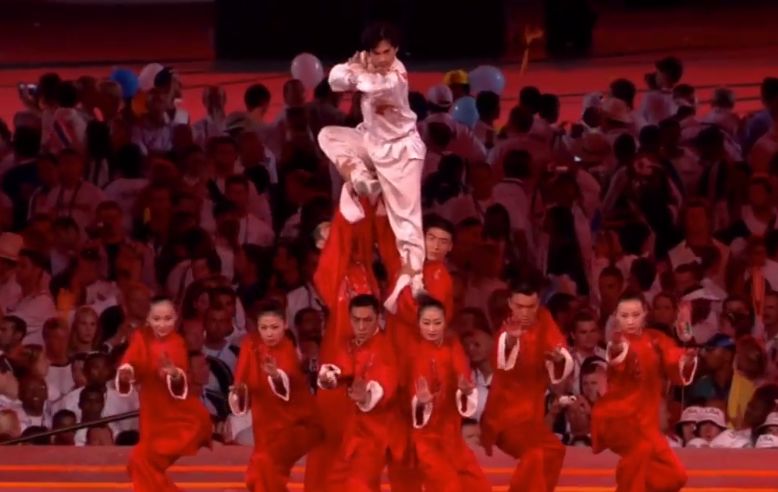 14年前,雅典的《北京八分钟》里,他献上了一台浓浓民族味的表演,基本就是一次“中国元素大合集”。