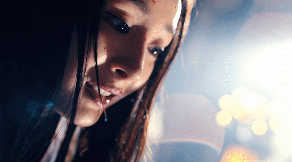 女主揭开遮眼丝带前,平静若水,缓缓睁眼后,眼神凄厉。