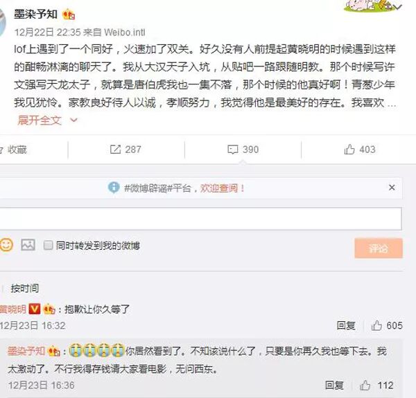 并在评论区和黄晓明称兄道弟起来,至此两人不和的传闻才算是告一段落。