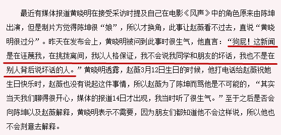 但不管是记者采访黄晓明还是赵薇打抱不平,都没有找到真正的出处……
