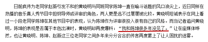 但其实黄晓明说的是“我和陈坤很多年没见了”,所以“我和他不熟”到底是谁加上去的?