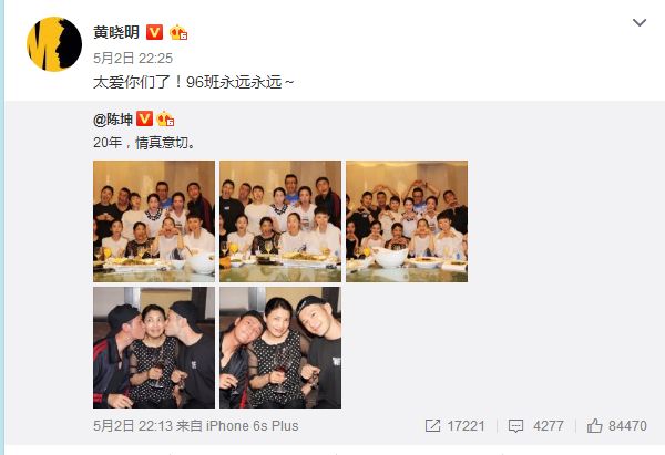 时间来到2017年,陈坤突然晒出20年同学聚会的合照,后两张照片的用意十分明显,力破不和传闻。