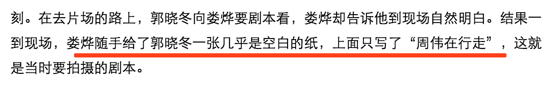 郭晓冬说自己的那场戏十分难拍,因为闭着眼要特别小心工作人员都蹲在旁边,自己也不能碰到他们