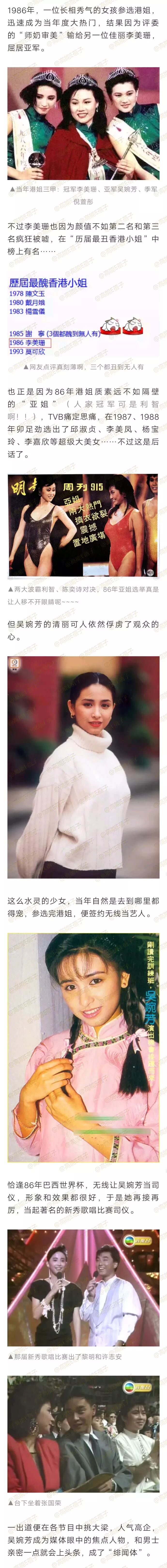 在今天的头条中,我们提到了86年港姐三甲李美珊、吴婉芳和倪萱彤。