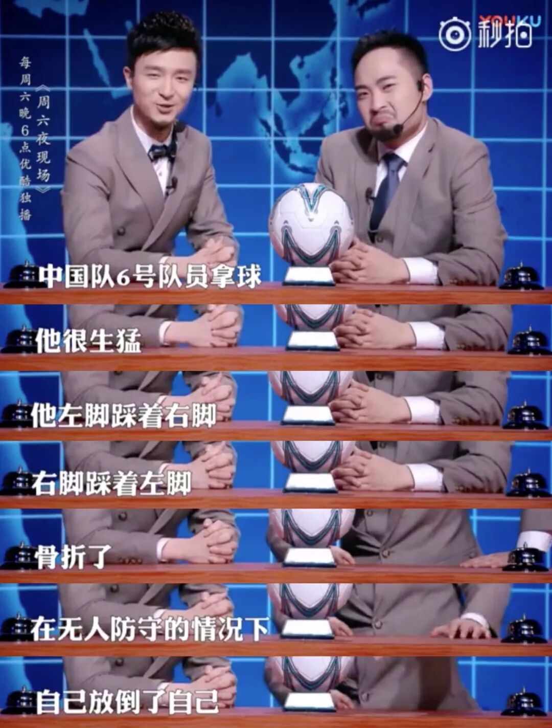 后来等到了第二期,主播们才跟上节奏发力,开始不留情吐槽中国男足,就这个内容,谁来贱兮兮地点评一场都会很好笑↓