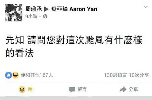 怼粉丝是日常操作。粉丝:请问你对这次台风有什么看法。