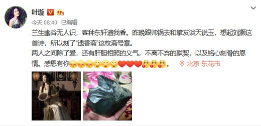 就是似乎最近小默先生的降头过了之后,叶璇的画风有变知性了些,微博各种温柔地晒恩爱,有时候还掉点书袋,学霸才女人设算是keep住了。