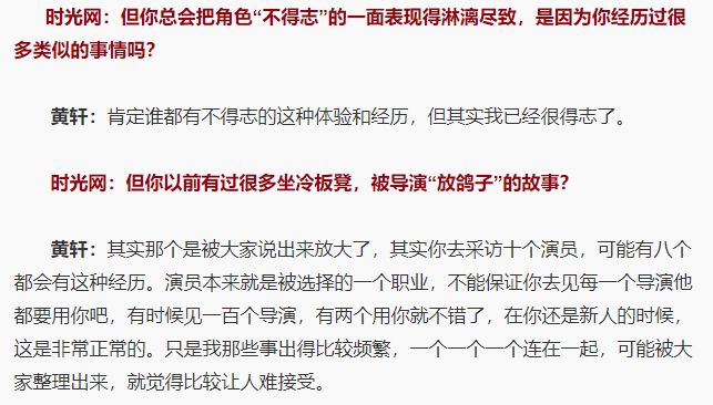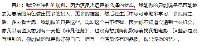 慢慢地,黄轩接受了这种时常处于选择和被选择的状态,他认为这是一个新人演员的必经之路,而且自己现在已经很“得志”了。