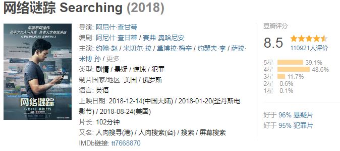 这次给大家准备的影片是豆瓣评分8.5的《网络谜踪》。