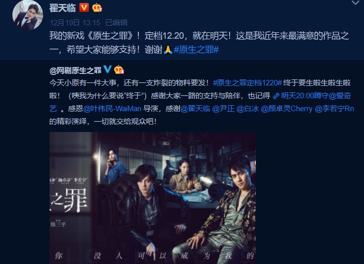 娱乐圈真学霸翟天临,自评《原生之罪》是“最近几年最满意的作品之一”,而且还写了几万字的人物小记。